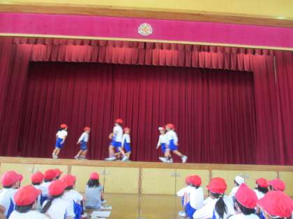 前回グループごとに考えた踊りを,舞台の上で発表しました。
