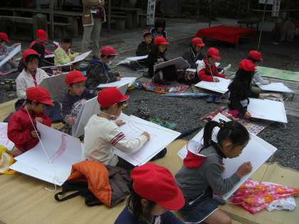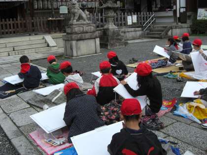 雨が今にも降り出しそうな日でしたが,写生に行ってきました。画板に画用紙を置いて,見て描く絵は初めてです。狛犬を描いたり建物を描いたり,描きたい場所を見つけて1時間ほどでしたが,集中して,描き上げました。