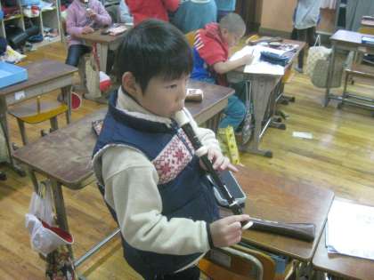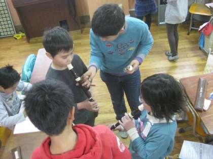 3年生は,学習発表会で音楽発表をします。子どもたちは,休み時間に自主的にリコーダーの練習をしています。教えあいながら,練習も楽しそうです。今年度の発表会のテーマである「つながる」ということを感じる場面でもありますね♪