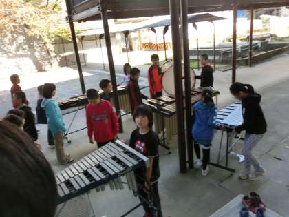 工事の事情で,木琴や鉄筋,大太鼓やバスオルガンなどを,一度3階まで持ちあがり,また1階までおりるという作業。しかし,5年生のメンバーは協力して手際よくすすめてくれました。思った以上に素早く,感心しました。