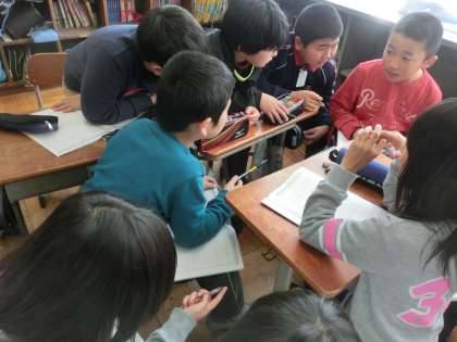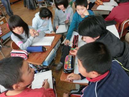 友だち同士で,互いのよさを教え合う場面では,恥ずかしそうにしながら,嬉しい気持ちも。