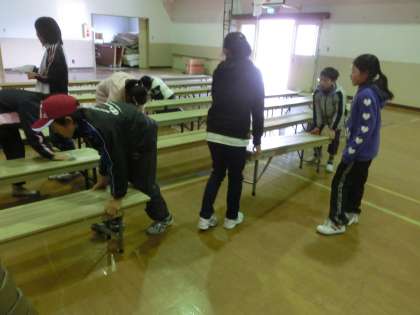 5年生は長椅子やパイプ椅子を並べる作業を中心に行いました。