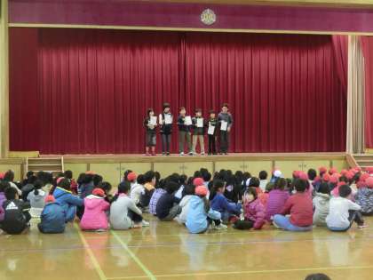 表彰では,卓球部の5年生がたくさん賞状を頂きました♪おめでとう!
