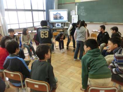 雨の日のみんな遊びは,椅子取りゲームで盛り上がりました。