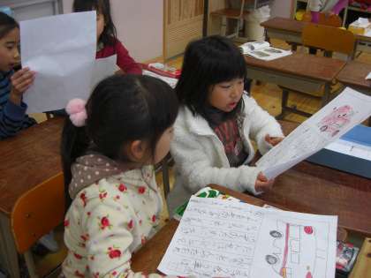 お気に入りの自動車の「しごと」「つくり」を,一人ひとりまとめました。今日は,ペアで自分の調べた車を紹介し合いました。“救急車”や“動物運搬車”“移動図書館車”など,たくさん調べることができました。この後,クラスで一冊の本にして,学級文庫に置く予定です。