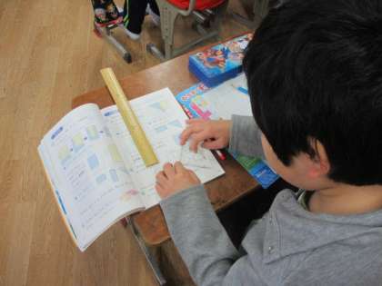 三角定規を使ってかどの形を調べたり,ものさしで辺の長さを測ったり…