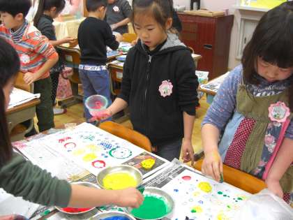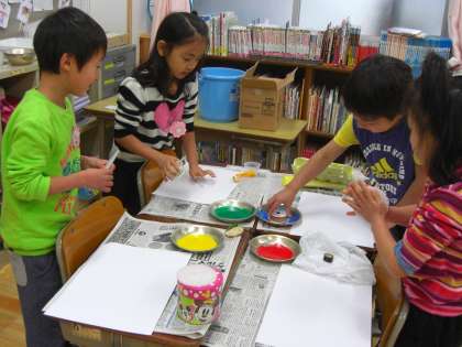 朝から,図工の時間を楽しみにしていた子ども達です。集めてきた,いろいろな材料に絵の具をつけて,画用紙にペッタンペッタンしました。絵の具の付け具合で上手く形が写らなかったり,写しだされた模様を楽しんだりして,1時間があっという間に過ぎていきました。