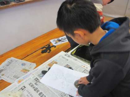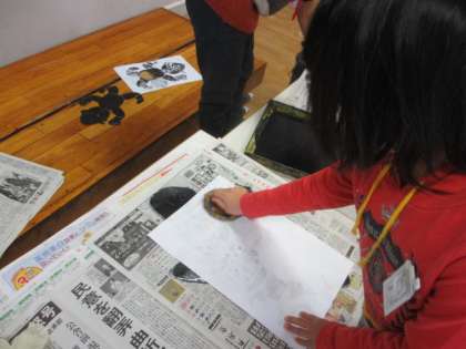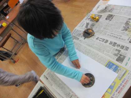 全体はバレンで,紙を重ねたところは指でこすっていきます。