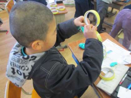 生活科で,身近な材料を使っておもちゃを作っています。