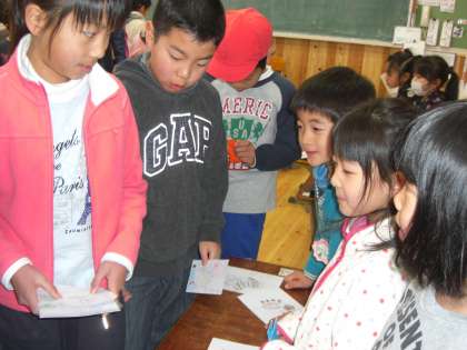 2時間目に,8つのお店を開きました。“動物やさん”“お花やさん”“おかしやさん”“洋服やさん”“楽器やさん”“野菜やさん”“文房具やさん”“ペットやさん”どのお店も大繁盛でした。4年生や3年生はクラス全員でやってきてくれました。おおぜいのお客さんがきてくれて,どの子も生き生きと活動していました。