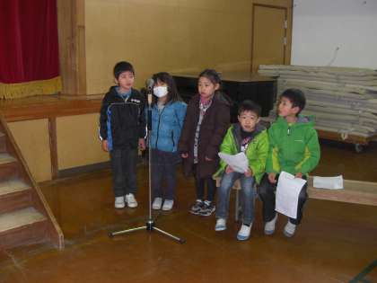 10日(月)に延期になった“ふれあいの日”の練習をしています。まだまだ,途中で止まったり早口で言ったりと,上手く進まないところも多いですが,みんな一生懸命です。今日は,体育館でクラス全員で練習をしました。明日しか,練習する日がないので,少しあせっていますが,今できることを,力いっぱい頑張ってほしいです。