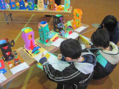 いろいろな学年の友だちが作った作品を見て,子どもたちは