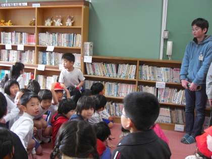 今週は,読書週間です。担任ではない先生が絵本の読み聞かせに来て下さったり,中間休みに読書室へ行ってゲームを楽しんだりしています。今日は,本探しゲームがありました。どこにどんな本が置いてあるのかを理解するためのゲームです。1年生も大活躍でした。