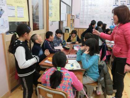 「はやし言葉で音楽をつくろう」というテーマで音楽づくりに取り組んでいます。