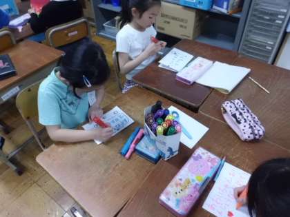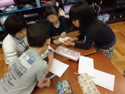 係活動の時間をとりました。どの係も工夫をしながら仕事を進めています。賞状やメダルを作るグループ,次の活動に向けて役割を相談をするグループなどがありました。一人一人が責任をもって係の仕事を進めてくれるので,とても頼もしいです。