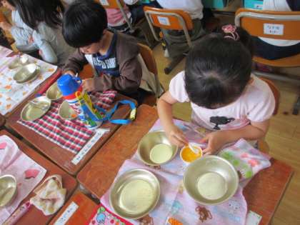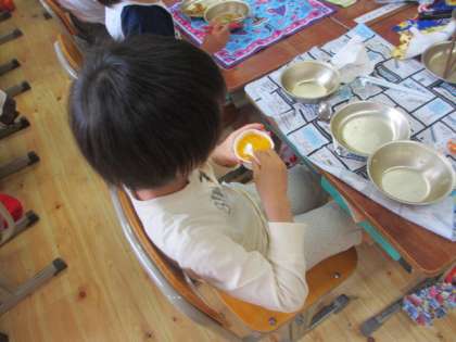 当日は曇り空だったので,少し寒そうにしている子もいましたが,大喜びで食べていました。