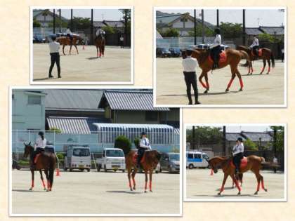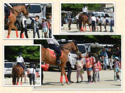 目の前で馬が歩いたり駆けたりするのを初めて見るこどもも多く,馬があまりに大きいのでびっくりしている1年生もいました。