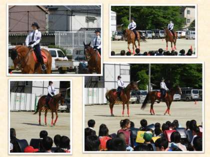 今年の集団下校時には,京都府警察「平安騎馬隊」の方々にもお世話になり,馬上のおまわりさんから「気をつけて帰ってね」と,声かけもいただきました。