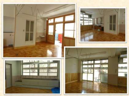 この後は,ランチルームの天井の貼り替え,本館周りのコンクリート打ち,アスファルト舗装などが残っているようです。5月末の運動会には完全に改修工事のできあがった校舎をご覧いただくことができます。