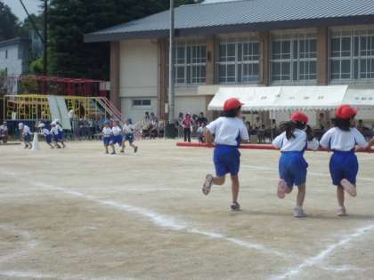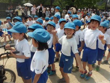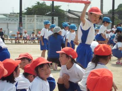 1年生と一緒に取り組んだ団体競技。練習で確かめた通り,ルールを守って取り組めました。みんなで声を掛け合い,協力して取り組むことの大切さに気付くことができました。1年生とも少し仲よくなれたかな?!