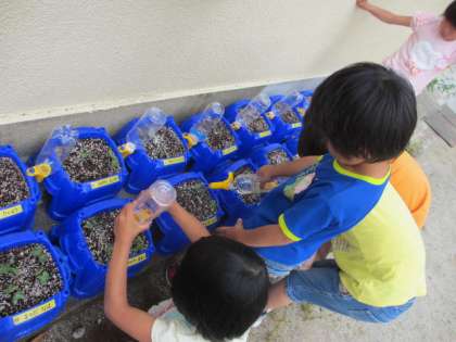 これから毎日水やりをして,アサガオの成長を見守っていきましょうね。