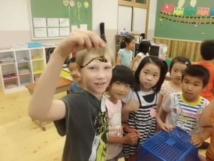 昨日たんぽぽ学級の教室にオニヤンマが入ってきたそうです。そのことを教えてもらった子どもたちは,昼休みに大喜びでたんぽぽ学級の教室に向かいました。何人かはつかませてもらったようです。周りに集まってきたたんぽぽ学級や1年生のお友達とも,オニヤンマを通して仲よくなれたかな?!