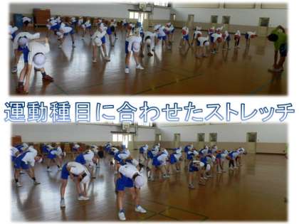 「走り高跳びでよく使う筋肉はどこだろう。」ということを考え,使う筋肉を意識してストレッチをしました。