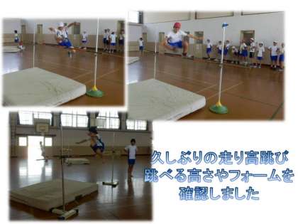 その後は,昨年のことを思い出し,自分の跳べる高さやフォームを確かめました。