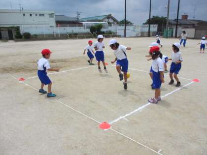 よいお天気だったので,運動場でころがしドッジボールができました。