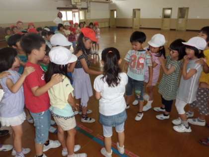 来週の学校探検に向けて,1年生と仲良しになろうねの会を開きました。プログラムは,手つなぎ鬼とじゃんけん列車です。仲良しグループのお友達と一緒に楽しみました。そして最後に,来週の学校探検の招待状を渡しました。1年生は大変喜んでくれたようです。学校探検がますます楽しみですね。