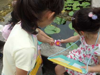 2枚目の観察記録を書くために,色のついた短冊をもって中庭に出ました。一度同じ活動をしているので,こちらが何もアドバイスしなくてもいいぐらいしっかり観察できました。