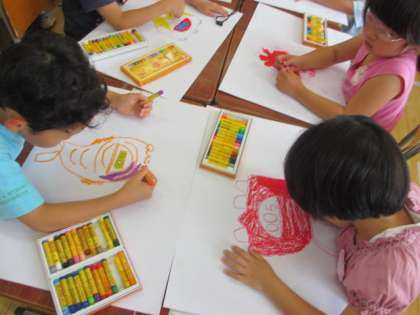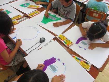 そのことを思い出しながら,ストップウォッチと走っている自分の絵をかいています。