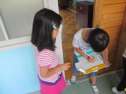 2年生のお兄さん,お姉さんに,学校たんけんに連れて行ってもらいました。