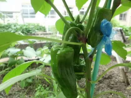 こちらはピーマンときゅうりです。こちらも収穫間近です。夏の足音が近づいてきているようですね。