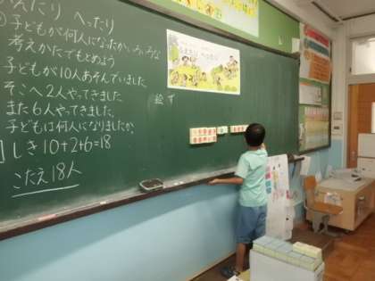 2時間目は算数です。数図ブロックを使ったり,自分で描いた絵や図を使ったりして,考え方を十分に説明することができました。