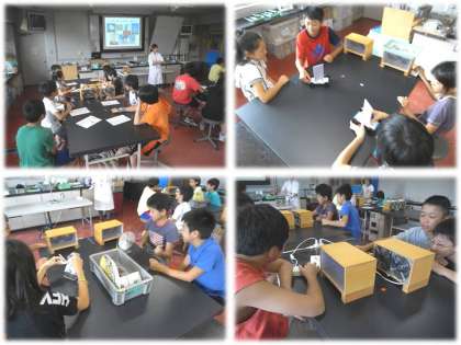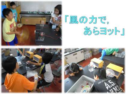 2組の科学センター学習では,風の力を用いた実験をたくさん行いました。風車をつくって送風機で回してみたり,うちわで風車を回して電圧を測ったりしました。