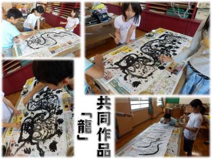 最後は,半紙をつなげて大きな紙を作り,共同作品を描きました。