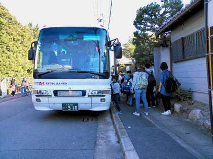 出発式をおえたら,バスに乗り込み,いよいよ三錦を出発します。