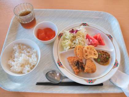 思い切り体を動かした後の夕飯。バランスよく取り分けています。