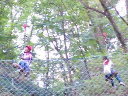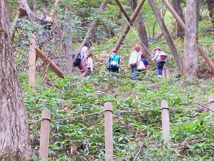 山から下りると,休む間もなくフィールドアスレチックスが待っていました。それでも子どもたちは元気いっぱい!黄色い声が聞こえるような気がしませんか?