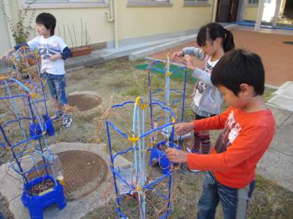 せっかくなので,アサガオのつるを使って,リースを作ることにしました。