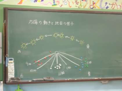 太陽の動きを調べるために,影の位置をノートに記録していきました。