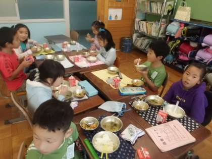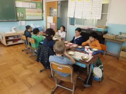 今週に入って席替えをしました。新しい班のみんなと楽しくおしゃべりしながらの給食時間です。最近,おしゃべりを楽しみながらも時間までに食べられることが増えてきました。