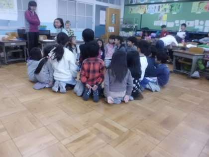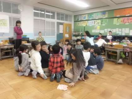 一日中雨が降り続いた今日のみんな遊びは,「ハンカチ落とし」でした。「どこに落ちるかな。」みんなドキドキわくわくしながら遊んでいました。「もうそろそろ時間だよ。」と声をかけても,「もう一回だけ!」と名残惜しそうでした。きっと休み時間がもっと長かったら,まだまだ盛り上がり続けていたことでしょう。