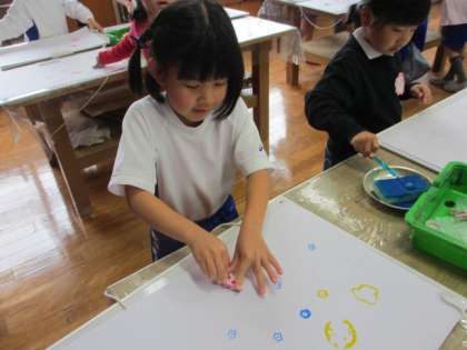 おもしろい形を見つけながら,ペッタンできました。