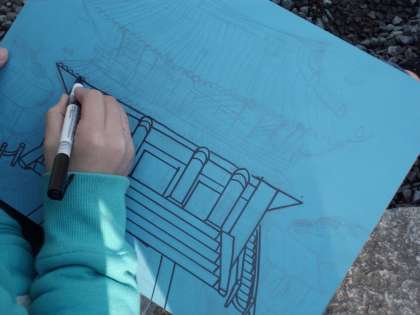南禅寺の三門をスケッチして,版画に表します。
