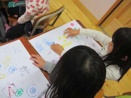 そこで,ペッタンした画用紙でお話を考えました。