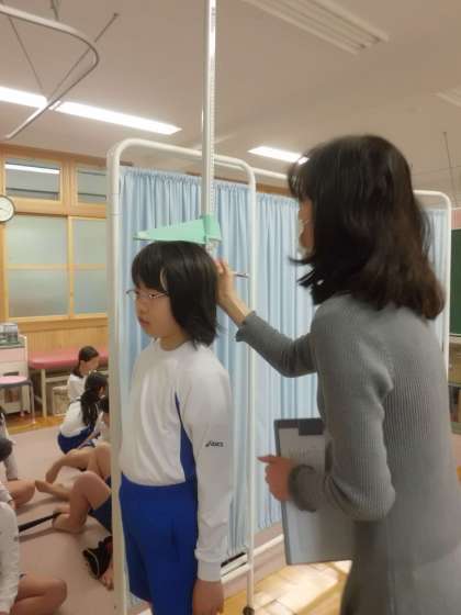 身体計測をしました。4年生のときより身長が伸びていて,みんな喜んでいました。