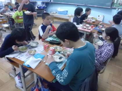 おかわりの時は,「ぼくもー!わたしもー!」と大変です。
