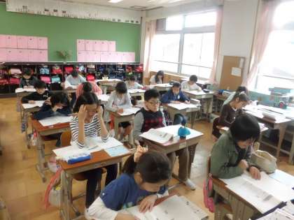 全国学力・学習状況調査がありました。このテストに向けて復習をしている子どもたちも多く,一生懸命取り組んでいました。終わった後には「疲れた—!」とやりきった表情を見せてくれました。